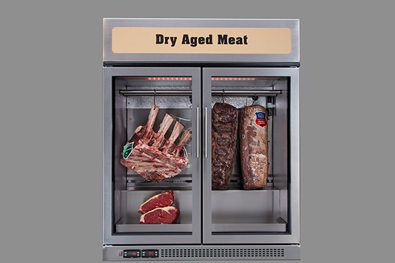 Een eendeurs standaard Dry Age Kabinet en een tweedeurs standaard Dry Age Kabinet.