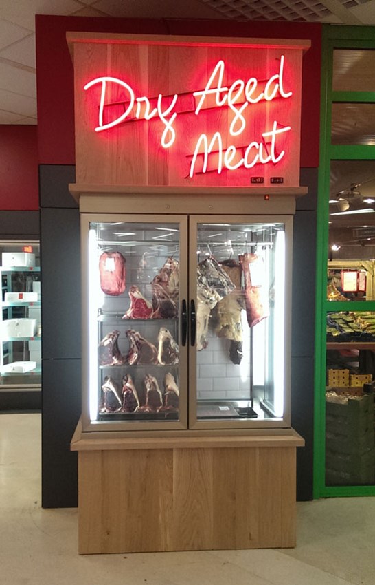 Met de grote verlichte woorden Dry Aged Meat kunnen klanten al vanaf ver zien wat deze Kabinet te bieden heeft.