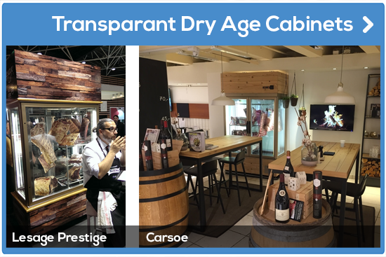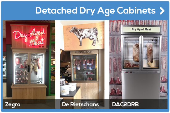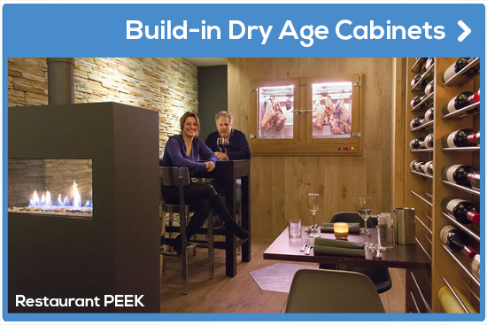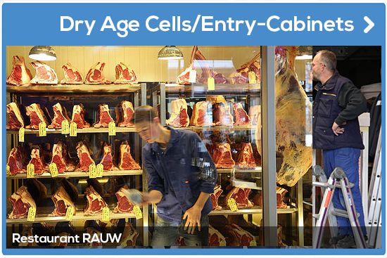 Dry Aged meat cabinets are matured longer period of time in which the air humidity, air circulation and temperature controlled. As a result, the moisture in the meat muscle tissue is vaporized, and is degraded by its natural enzymes. Because of this, there has been slow bester caught. The meat feels hard and dry, and looks black. But appearances are deceptive: when the meat cuts is inside bright red and soft as butter!